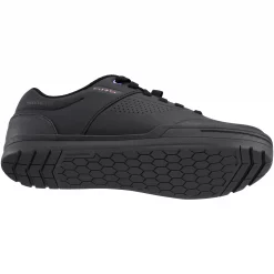 Perfect for casual riding on or off-road on flat pedals, Shimano’s GR5 Women’s MTB Shoes have a skate-inspired style that also looks good off the bike. Technical features include a sticky sole with a flat central section for easy repositioning and more deeply treaded areas at the front and rear for traction when walking. Scuff guards around the toes and padded ankles provide protection and comfort whilst the combination of mesh and synthetic leather in the upper keeps the shoe breathable.